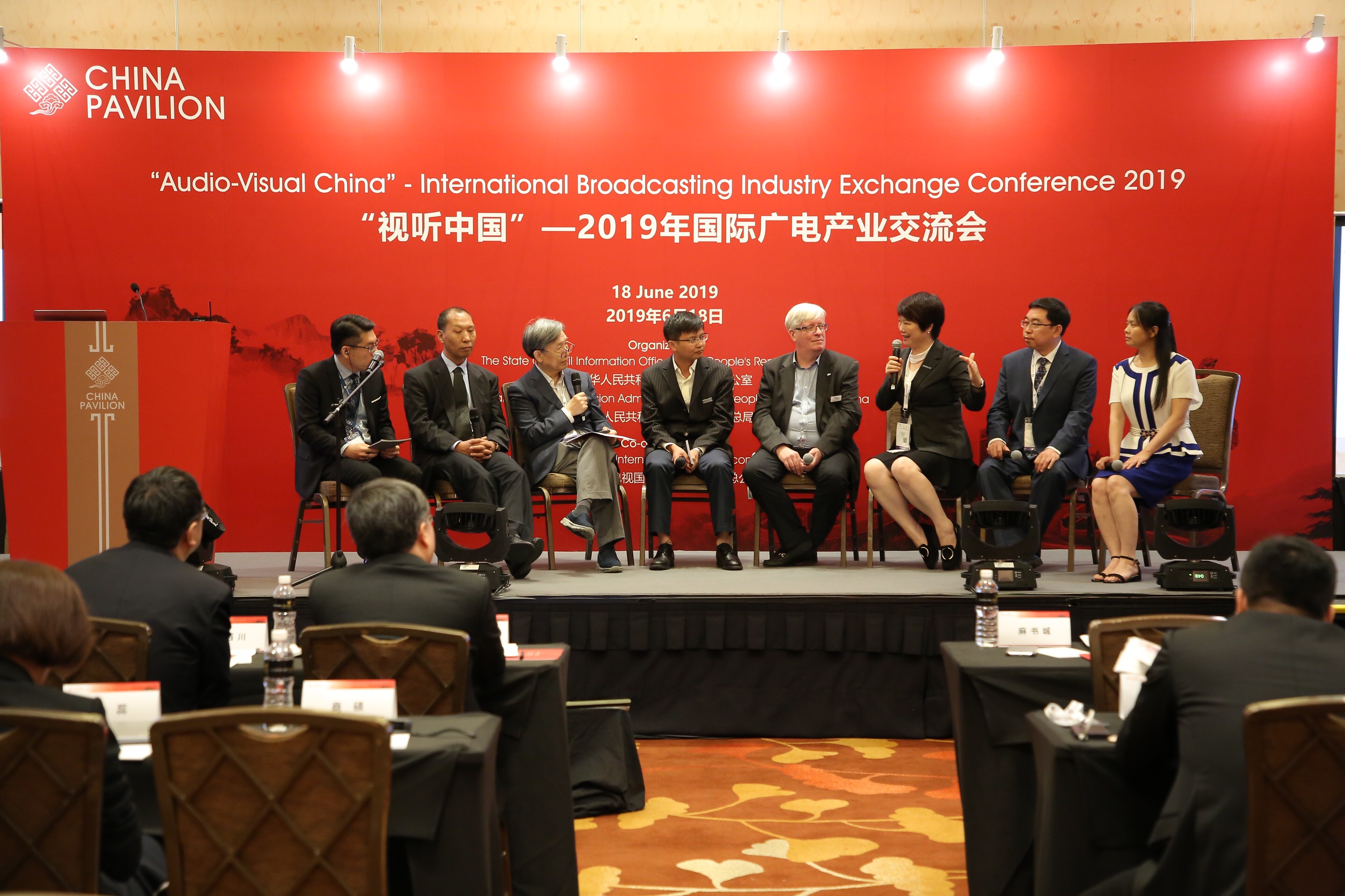 中国联合展台“视听中国”——2019年国际广电产业交流会上中国厂家与现场听众的对话讨论环节 供图 广西广播电视局
