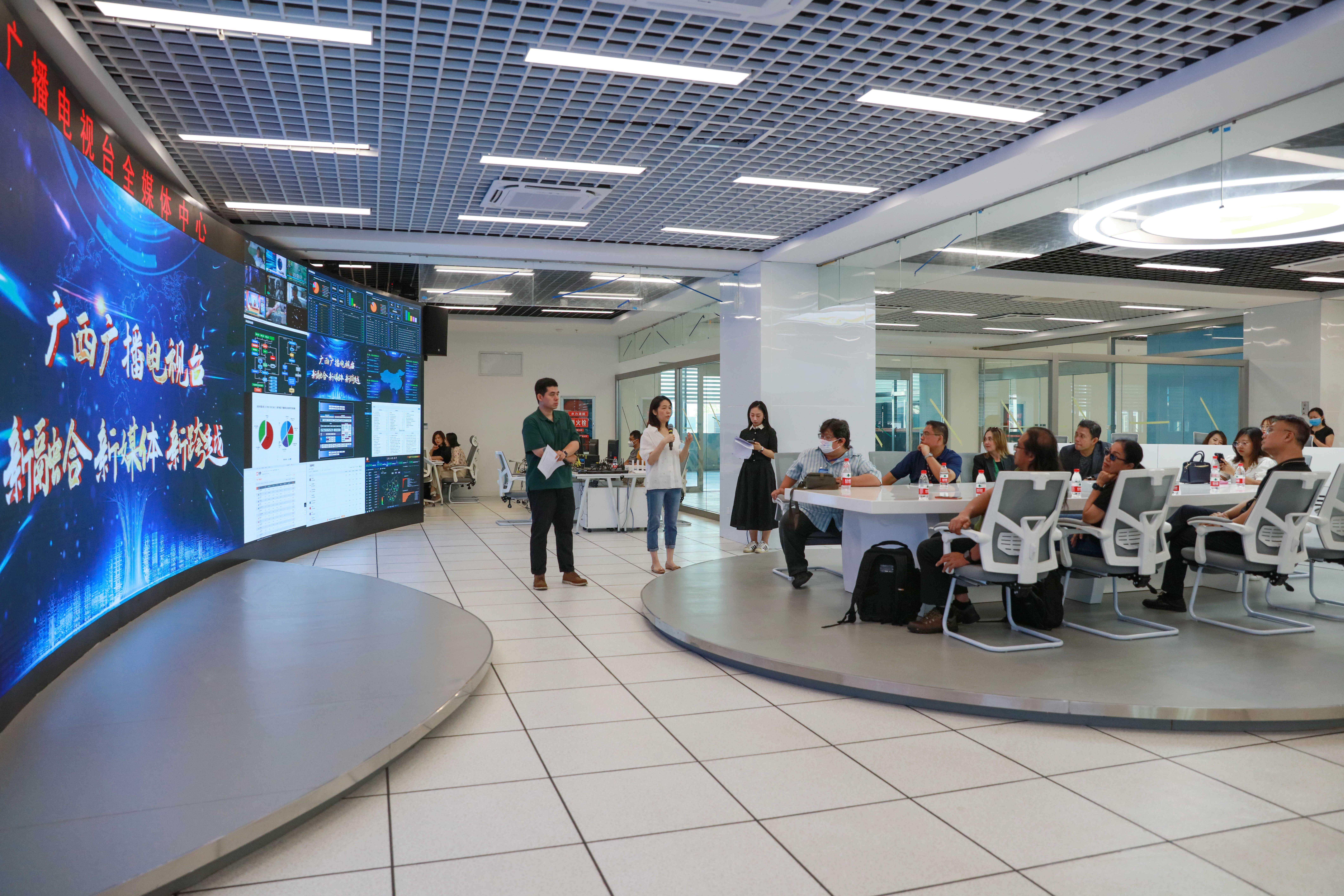 研修班一行重点学习考察我区在融媒体背景下,传统广播电视机构利用新媒体平台和技术实现传统媒体和新媒体融合的实践做法,并与有关单位围绕媒体发展战略、媒体融合条件下的新闻报道和国际交流与合作、有线电视发展战略、运营管理模式等内容进行研究探讨。在中国—东盟跨境主播孵化基地,研修班学员们深入体验跨境电商直播,并表达了极大兴趣与合作意愿。