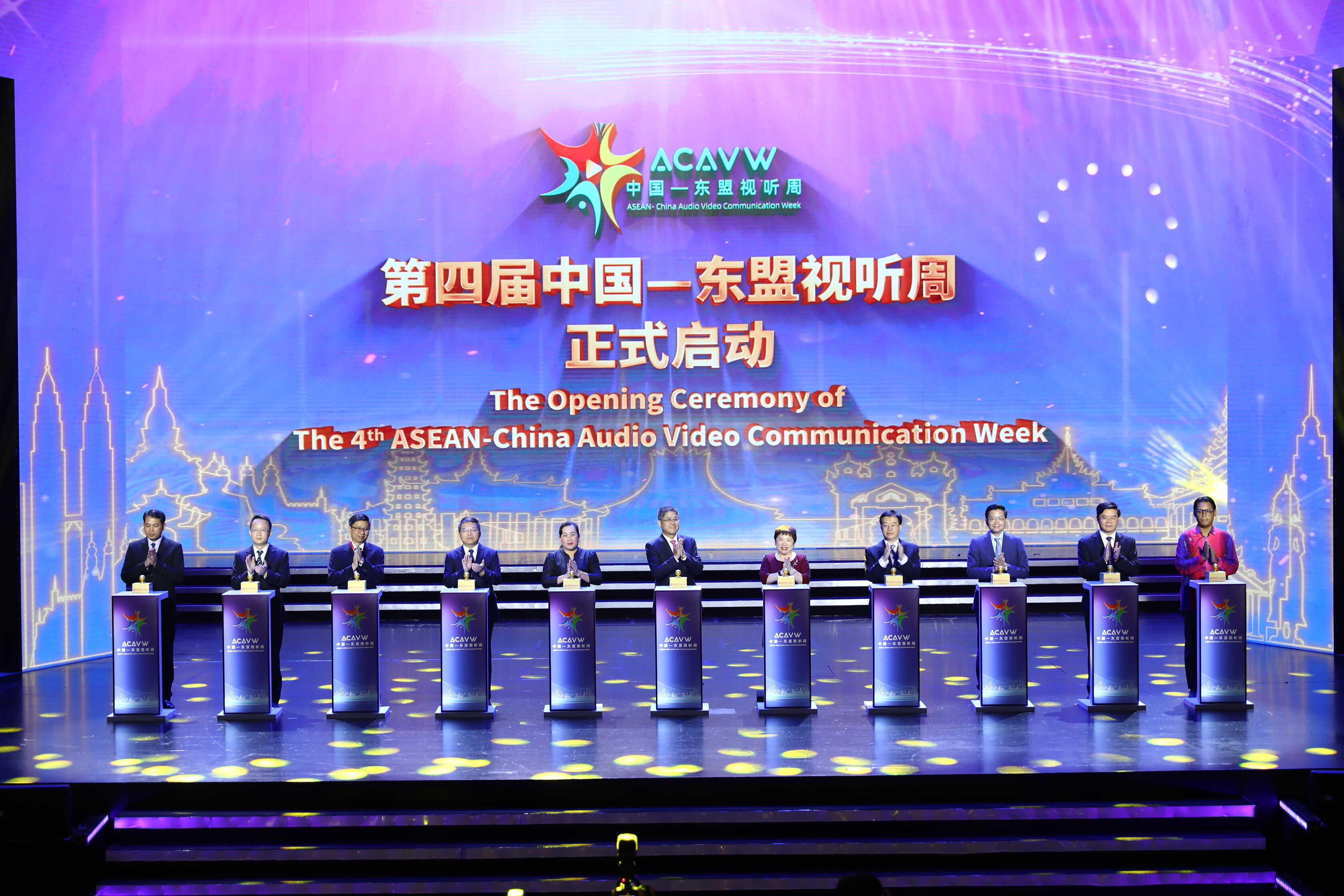 9月6日晚,第四届中国—东盟视听周开幕式在南宁广西文化艺术中心大剧院举行,中国国家广播电视总局副局长乐玉成,广西壮族自治区党委常委、宣传部部长孙大光出席开幕式并致辞,广西壮族自治区人民政府副主席苗庆旺出席开幕式,柬埔寨新闻部大臣乔·干那烈,缅甸宣传部联邦部长吴貌貌翁作视频致辞,参会嘉宾共同启动视听周。东盟有关国家驻南宁总领事馆官员、国家广播电视总局所属机构和部分省(区、市)广电部门有关负责人,以及传媒领域专家代表等300余人出席开幕式。