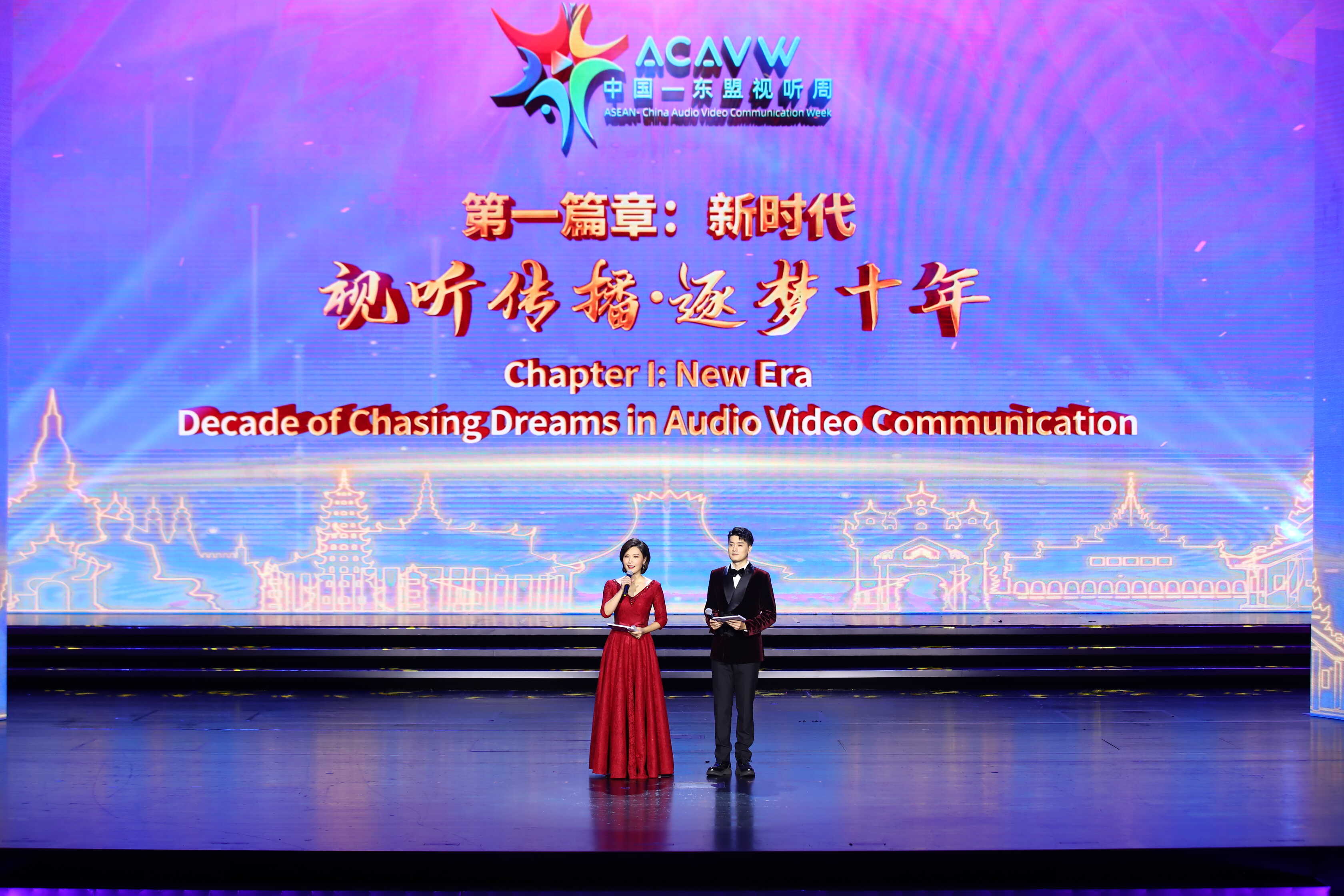 开幕式晚会设置了《新时代——视听传播,逐梦十年》《新视听——共建共享,互译互播》《新机遇——视听交流,合作共赢》《新未来——青年主播,共创未来》四个篇章,生动呈现中国—东盟视听行业友好互助、合作共赢,积极做友好交往的传播者、务实合作的推动者、和谐共处的守望者。