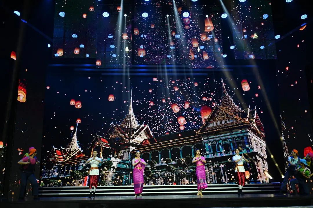 中柬两个会场的演员在“云上”同跳柬埔寨的传统舞蹈、同唱经典影视歌曲,并一同云游打卡、体验传统文化。节目通过大量创意互动,创新融合中国与东盟国家的文明互鉴、文化交往,拓展了中国和东盟各国视听文化往来交流的新形式。