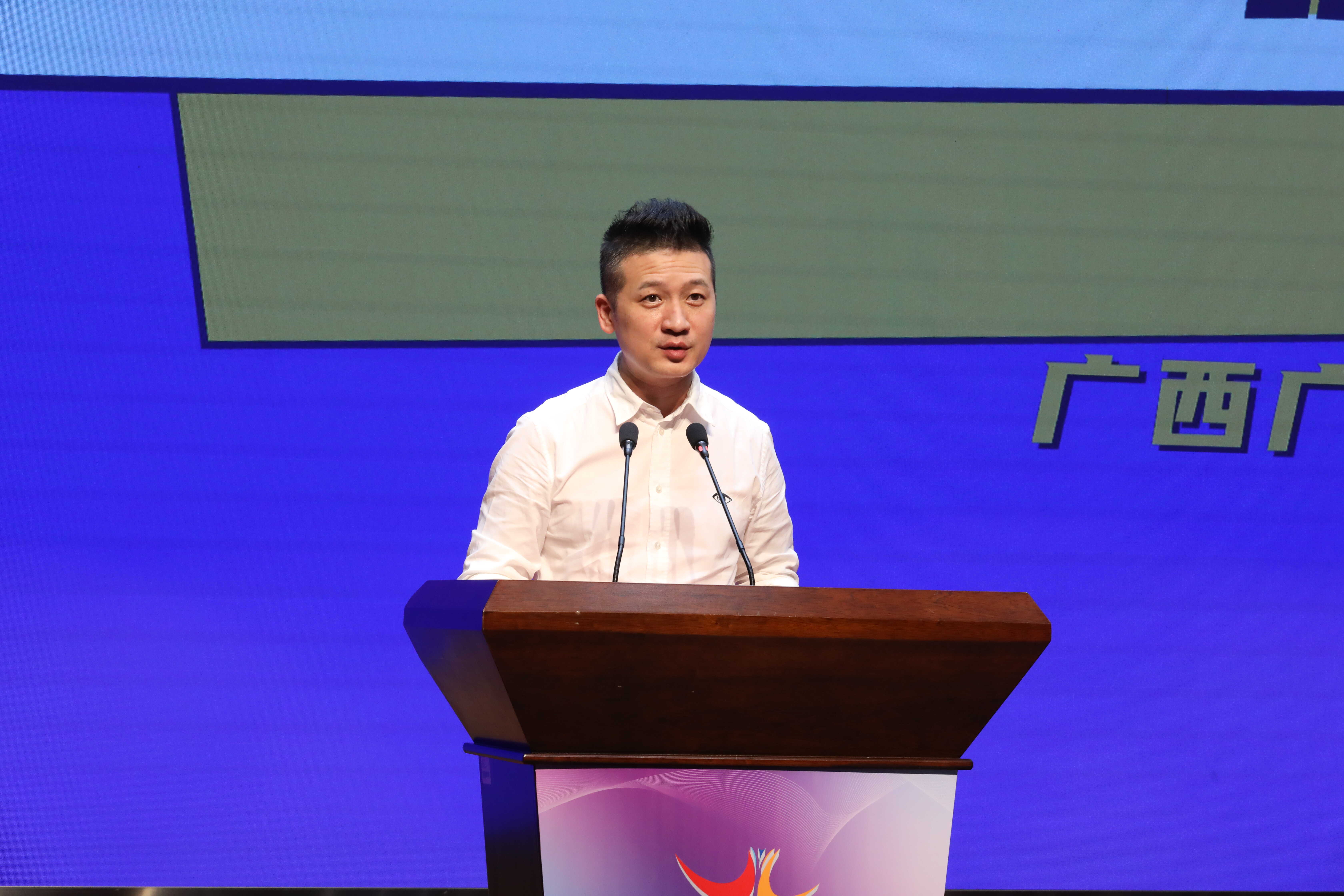 广西广电网络公司副总经理涂钧在闭幕式上推荐中国—东盟网络视听产业基地