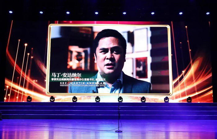 菲律宾总统新闻传播管理办公室秘书长、新闻部长马丁·安达纳尔发表视频致辞