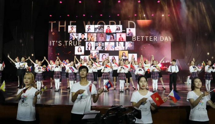 由于疫情防控工作的相关要求,东盟国家的歌手无法来到现场,为此,活动利用新媒体及科技手段,创新以“云合唱”的方式,邀请越南歌手杜氏清花、马来西亚歌手罗忆诗、老挝歌手玛尼拉·苏万端、柬埔寨歌手米索纳等分别来自14个国家的100多名青年,共同演唱了公益歌曲《We are the world》,为世界各国人民团结一心、共同抗“疫”加油鼓劲。