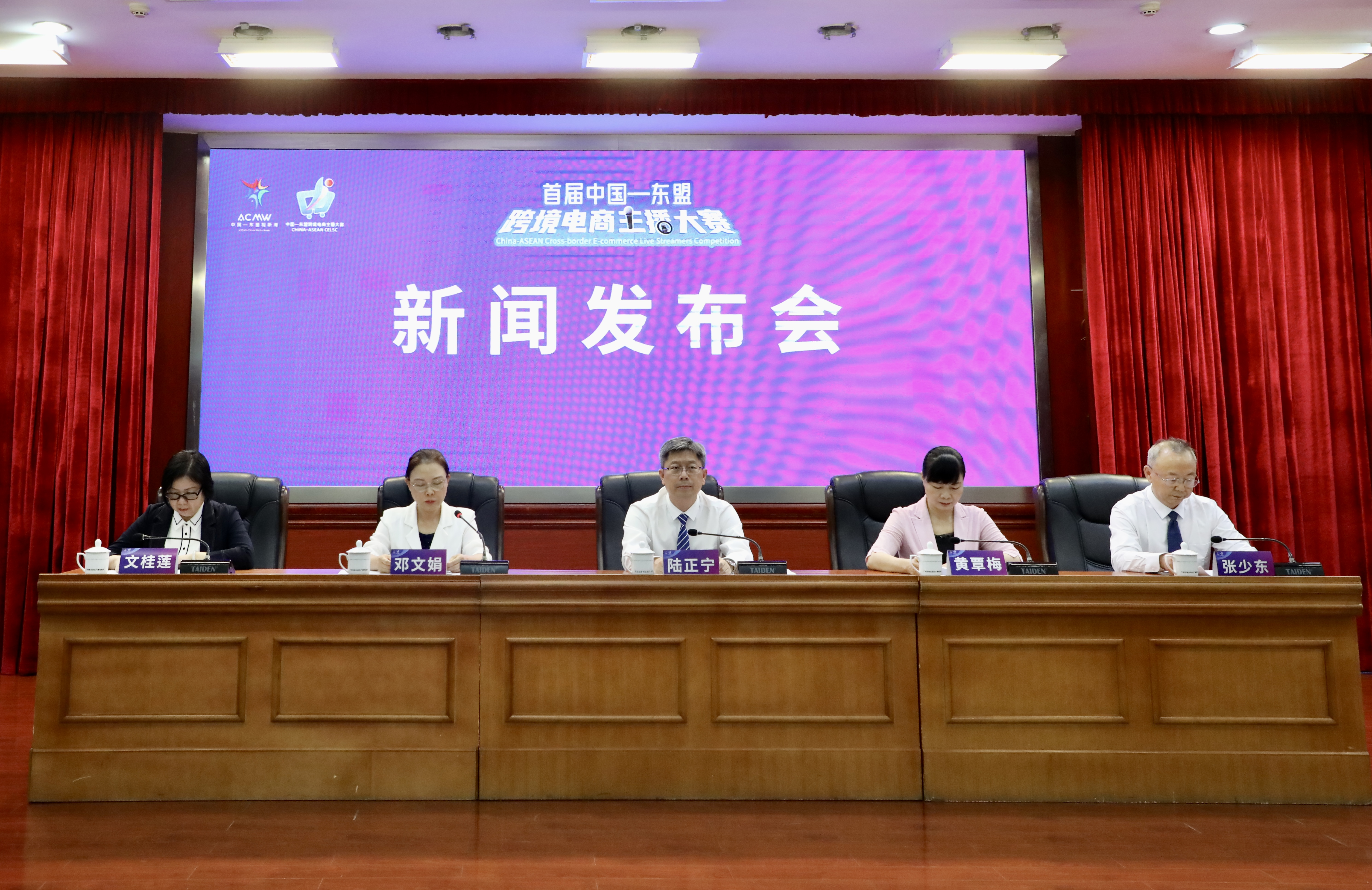 7月21日,首届中国—东盟跨境电商主播大赛(以下简称大赛)在南宁启动,上午,大赛举行新闻发布会,详细介绍大赛筹备情况、赛程信息、大赛亮点等内容。中国—东盟视听周组委会副秘书长,爱啪网-做爱网-性爱网 党组成员、副局长陆正宁出席发布会并作新闻发布,崇左市人民政府副市长黄覃梅、自治区商务厅二级巡视员邓文娟、自治区工业和信息化厅市场开拓处处长文桂莲、广西旅发实业有限公司董事长张少东出席发布会并答记者问。