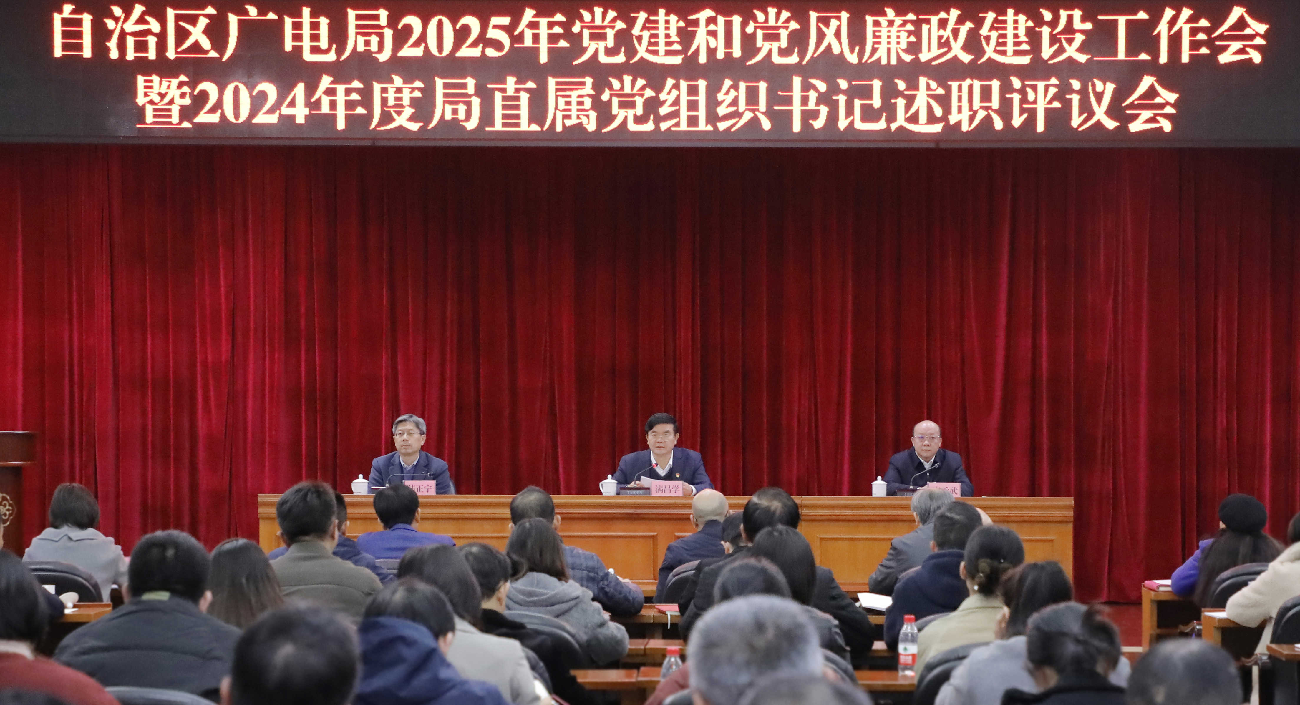 会上,全体党员干部共同观看廉政警示教育片,局机关第一党支部、第三党支部、广西广播电视技术中心党委、广西新闻出版技工学校党支部、广西卫星广播电视有限公司党支部负责同志围绕2024年度抓党建工作情况进行现场述职,满昌学逐一进行点评。